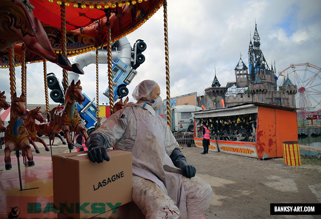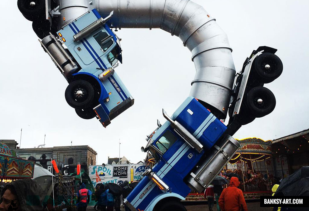 Bien sûr, si cette représentation malsaine et tordue de notre culture consumériste n’est pas votre truc, peut-être que vous avez de la chance d’être passé à côté, puisque l’événement a duré seulement 5 semaines, entre le 21 août et le 27 septembre 2015. Les billets se vendaient pour seulement 3 livres sterling l’entrée et 4000 clients pouvaient entrer par jour, pour un peu plus de 150000 visiteurs à la fin de l’ouverture. Le parc, qui présentait plusieurs travaux par 58 artistes différents (dont 10 par Banksy lui-même), dont Damien Hirst, Jenny Holzer et Jimmy Cauty, était riche d’installations, de sculptures et de graffitis intéressants et curieux. Se détachait particulièrement du reste l’œuvre Horse Scaffolding Sculpture (« Sculpture de cheval en échafaudage ») par Ben Long, et Big Rig Jig par Mike Ross, qui fut aussi exposé au Burning Man en 2007.