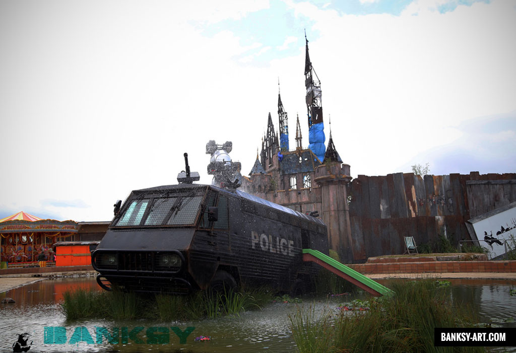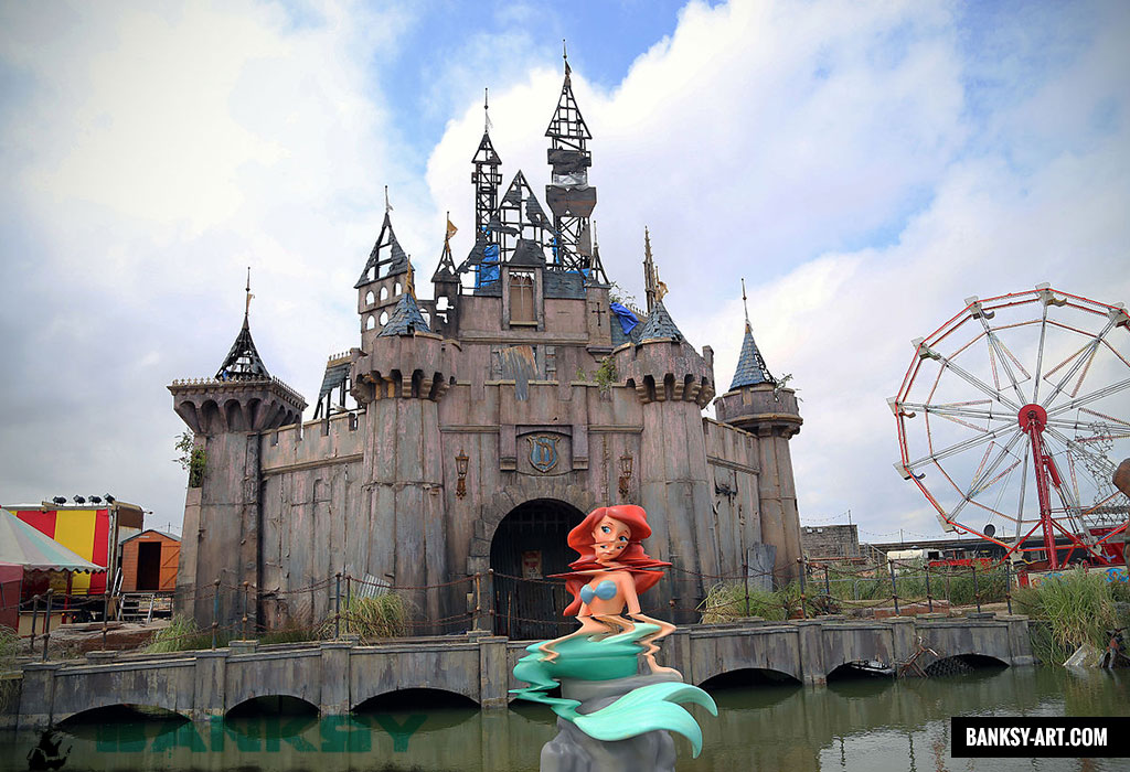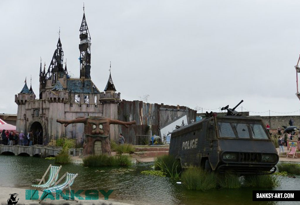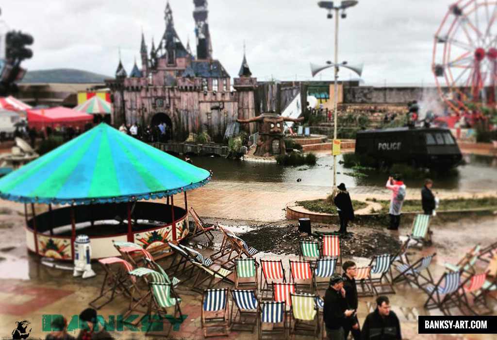 Le thème général de cette installation d’art pop-up, construite en secret avant d’être dévoilée, était de poignarder le Capitalisme et en particulier le monde fantastique de princesses et de poudre de fées construit par Disney dans le but de soutirer de l’argent aux familles et aux enfants. Dismaland à l’inverse, est explicitement construit pour ne pas être fréquenté par les enfants, selon Banksy lui-même et se veut une critique dérangeante du consumérisme qui offre une vue satirique du tourisme superficiel. Ironiquement, la ville de Weston-super-Mare, dans laquelle l’installation fut construite, a largement bénéficié de revenus liés au tourisme pendant l’ouverture du parc.